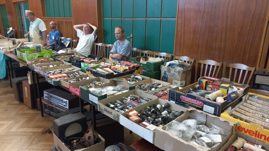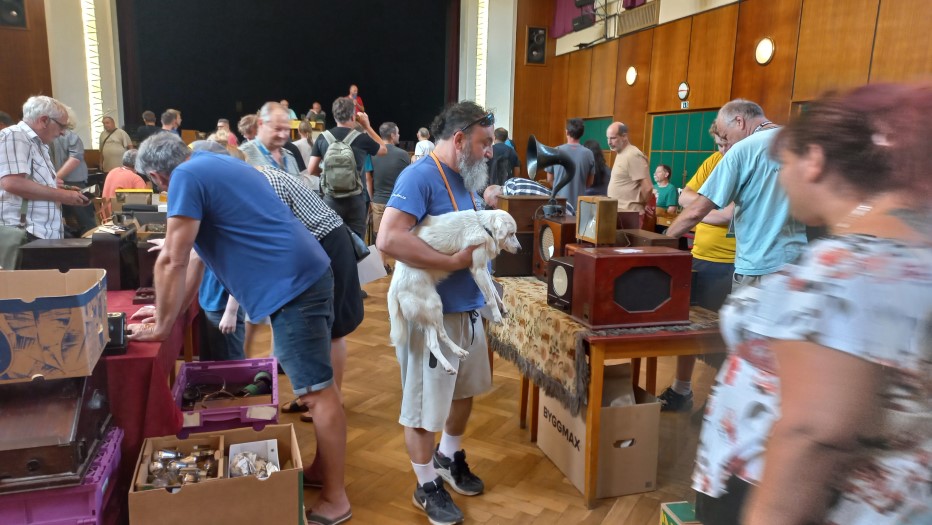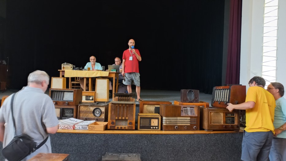Třešť, léto 2025Je zažitou skutečností, že letní setkání v našem sídelním městě bývá zlatým hřebem všech akcí HRČS a to z několika důvodů: Za prvé se konává v blízkosti klubovního Muzea Tesla a depozitáře našich sbírek, za druhé je pro pracovníky muzea toto setkání součástí poslední týdenní brigády. Díky těmto skutečnostem mívá třešťské setkání nejhojnější účast členstva. Je to logické, neboť klub také nabízí možnost přespání v ubytovně, čehož využijí především přespolní kolegové. Ti mladší mají k dispozici příjemné zelené prostranství pro stanování, každoročně k nám také zavítá několik autokaravanů. Na plácku vedle muzea se každoročně založí táborový oheň, k dispozici bývají připraveny lahodné klobásy či vuřty. Je až s podivem, že mnoho let nám na třešťská setkání vychází skvělé počasí. U ohně se sejdou staří s mladými, sběratelé všeho možného „od elektra“, takže řeč nestojí a o témata k dobrému jídlu a pití vskutku není nouze. Zkrátka pohoda, jakou si člověk může jen přát. Spát se jde okolo půlnoci, neboť pořadatelé už vstávají kolem šesté ráno, aby stihli připravit bar a kuchyni ještě před samotným otevřením kulturního domu. Sobotní ráno je pro členstvo obvyklé. V osm ráno je zpřístupněn sál, připravené stoly se nebývalou rychlostí zaplní známým sortimentem a nastane čilé obchodování. Sekretář Václav Červinka i letos rozdával aktuální letní číslo Radiojournalu, jehož náklad jsme krátce před setkáním vyzvedli z tiskárny. Petr Jeníček na svém stanovišti zájemcům nabízel analýzu součástek a měření kondice elektronek. Pozornosti se těšila bohatá nabídka zajímavějších radiopřijímačů kolegů Horáků či Pavla Anděla. Viktor Vích zajišťoval pomocí miniaturního vysílače pokrytí sálu kulturního domu rozhlasovým signálem na bývalé liblické vlně 470 metrů čili 639 kHz. Zhruba půlhodinu po deváté zahájil licitátor Pavel Boudný dražbu a jako první přišly na řadu přebytky z klubovního muzea. Klub často nabízí předválečné nebo zahraniční přístroje, které nezapadají do sbírkotvorné koncepce Muzea Tesla. Jejich prodejem si aspoň vyděláme na nákup či dopravu nových či rozměrných artefaktů. Po klubovní nabídce už přišli na řadu členové, kterých bylo do dražby přihlášeno celkem dvanáct. Kolegové Jan Polák s čl. číslem 333 a Bohuslav Coufal věnovali výtěžek z dražby svých předmětů ve prospěch klubu. Děkujeme, moc si toho vážíme! Po celou dobu akce bylo k dispozici občerstvení podávané ze dvou stanovišť: Za barem měl službu předseda HRČS Honza Mottl s Tomášem Hanákem a při výdeji obědů se činil Viktor Vích s Petrem Pekárkem s vydatnou pomocí paní našich kolegů, Blankou Čermákovou a Maruškou Vajchartovou. Všem patří obrovský dík za péči o naše žaludky a chuťové buňky. K obědu se podával lahodný guláš z řeznictví z nedalekého Batelova. Náš dosavadní dodavatel, vyhlášené tradiční třešťské řeznictví a uzenářství rodiny Marečkových, bohužel na začátku tohoto roku k lítosti široké veřejnosti, ukončil svou činnost. Po ukončení dražby v kulturním domě ovšem sobotní akce zdaleka nekončila. Účastníci se přesunuli k prohlídce expozic Muzea Tesla a následně do podkroví depozitáře, kde pokračoval prodej dalších přebytků klubovní sbírky, tentokrát těch těžších, rozměrnějších, ale také méně atraktivních. I zde si zájemci za pár desetikorun až stokorun přišli na své. Okolo půl páté odpoledne zůstalo na muzeu původní brigádnické osazenstvo, které toho dne po náročném dni poklidilo kulturní dům a užilo si po zbytek dne zaslouženého odpočinku. V neděli brigádníci poklidili i muzeum s depozitářem a jejich okolí a rozjeli se ke svým domovům. Pavel Boudný, Radiojournal
